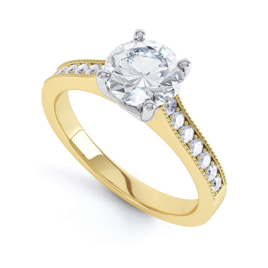 Round Brilliant Cut Parallel Grain Shoulder Set Band